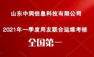熱烈祝賀山東中潤2021年一季度用友聯合運維考核拔得頭籌